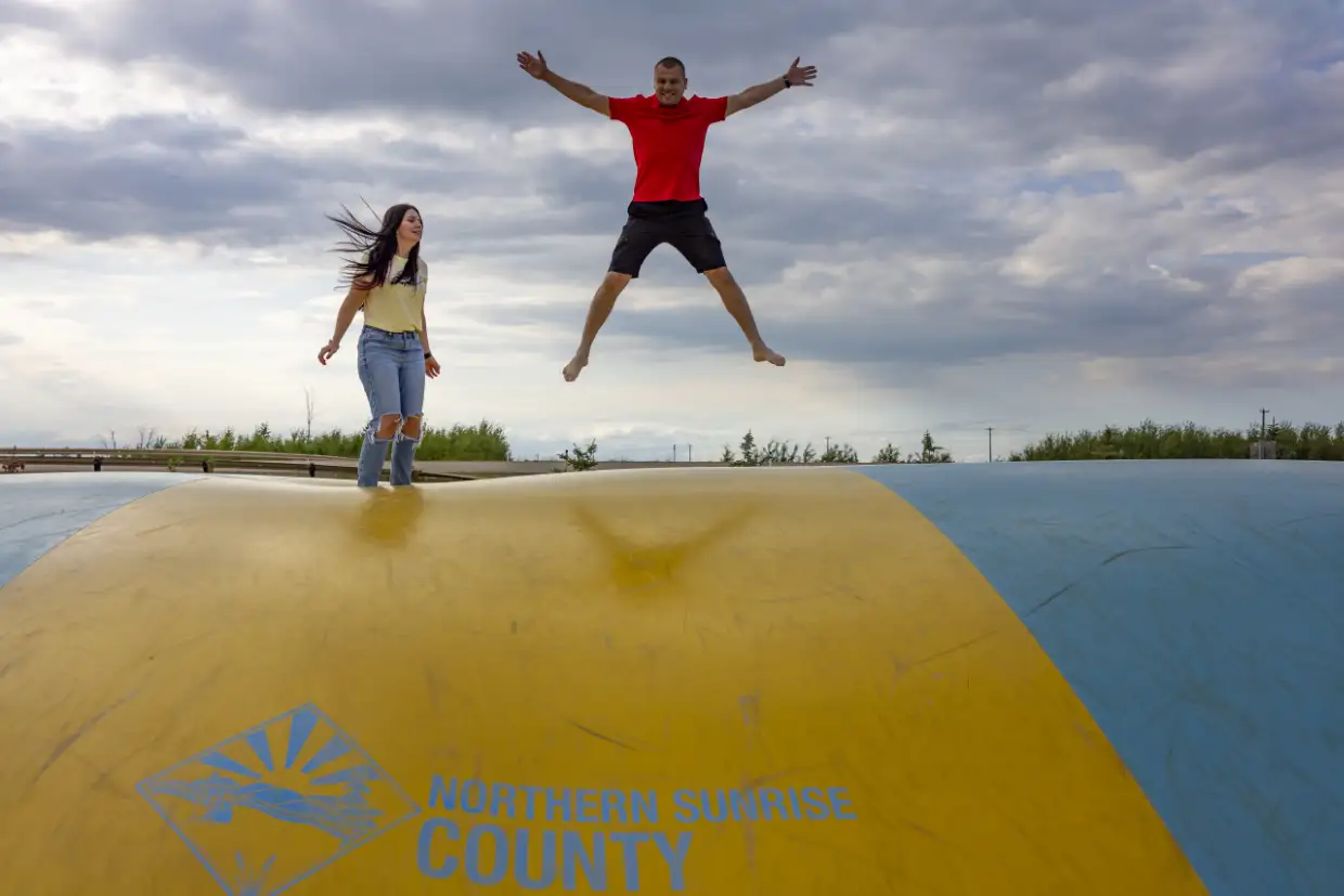 Community Park and Campground, the bouncy pillow at Cecil Thompson Park has fast become a landmark in the community of Northern Sunrise County. In addition to the bouncy pillow the park features; challenging outdoor exercise equipment, a wonderful fishing pond, a beautiful gazebo and a walking bridge. A perfect location to spend the day or spend the night at one of the 5 unserviced lots, available first come first serve at no charge.