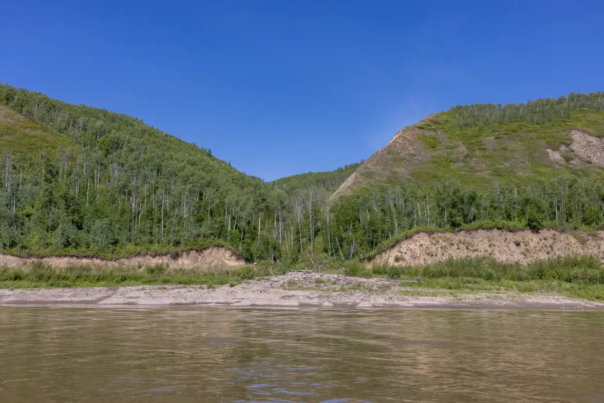 As you make your way downstream, you will pass under the Mercer (DMI) bridge, which is the longest rural bridge in Alberta at 734 meters long. Underneath, there can be some waves, so it’s advised to stay in the middle or go to the right. Just after the bridge you will see Wesley Creek on the right side entering the Peace River. Named after Pat Wesley, this creek is quite obvious and hard to miss.Paddle Time